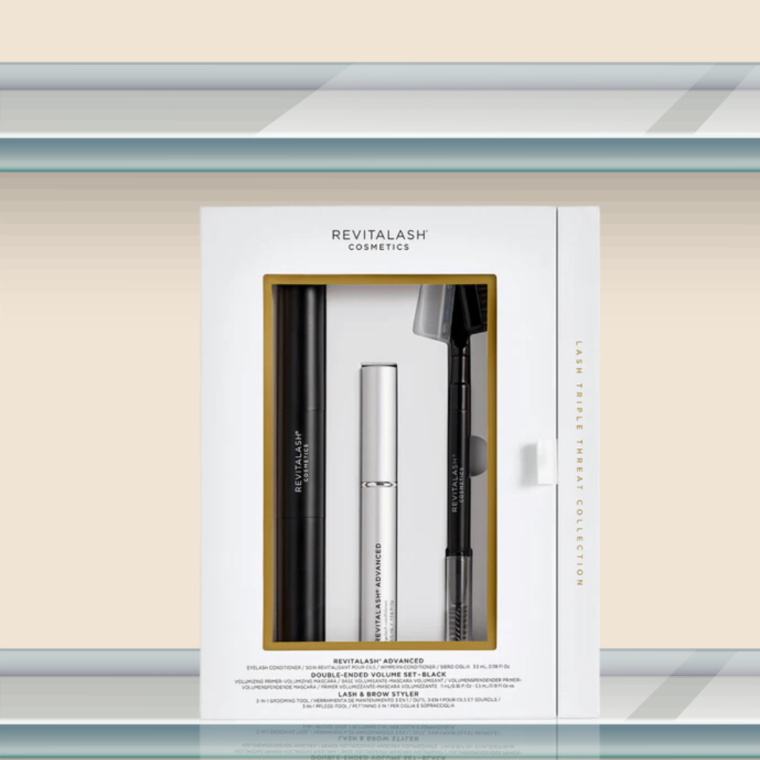 Enhance your daily beauty routine with the RevitaLash Lash Triple Threat Gift Set. This exclusive set includes the revitalizing lash conditioner along with two bonus items – volumizing mascara & primer, and 3-in-1 grooming tool
